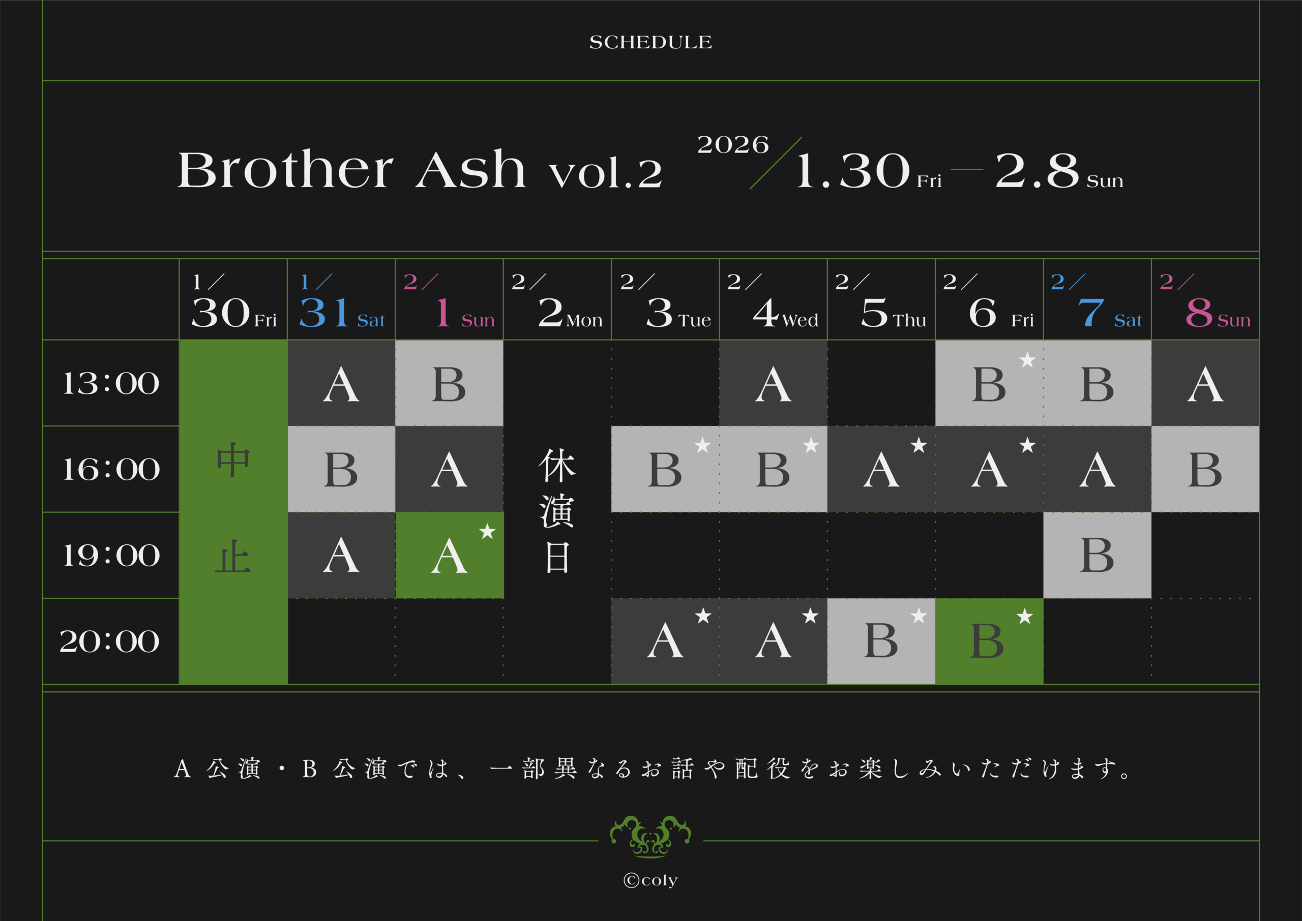 上演は【A公演】【B公演】の2種類。